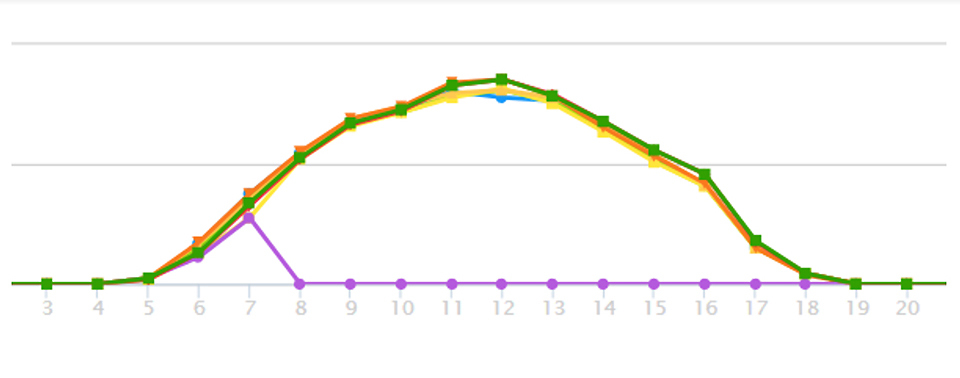 ▼アラートは全てのトラブルに反応するわけではない [画像・上:ストリングで発電が停止しても、アラート発報されないこともある] 高圧発電所の場合、遠隔監視システムを設置している比率は高い。しかしせっかく付けているのに、残念な使い方をしている例が少なくない。 もっとも良くないのは、「遠隔監視システムのアラート発報に頼りすぎている」例だ。 遠隔監視メーカーの宣伝文句では、「発電所…