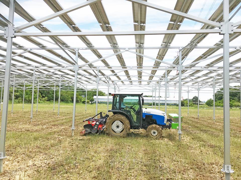 農業での実績活かし 20cmほどに伸びた苗が風にそよいでいる。生育は順調だ。この時期にどこでも見かける田園風景だが、その水田の上には太陽パネルが設置され発電を行っている。他ではめったに見ることのない光景だ。 [画像・上:色を塗り替えた会社で保有するトラクタ] ここは愛知県豊田市の水田。水田を所有するのは地元を中心に各種建設事業を展開する同市の太啓建設だ。今年から営農を続けながら…