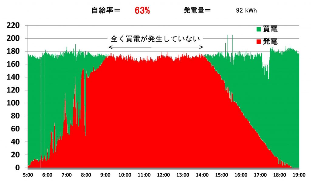 [画像・上:発電が安定している時間帯は全く買電が発生しない]