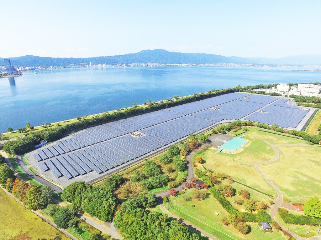【京セラ】琵琶湖の人工島にメガソーラー完成。約8.5MW、滋賀県最大規模