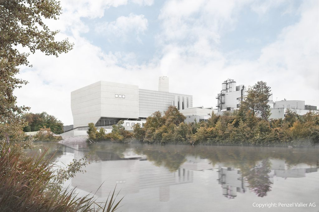 [画像・上:スイスで建設予定のごみ焼却発電施設の完成予想図(提供:日立造船)]