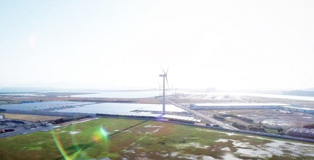 [画像・上:北九州響灘風力発電所・太陽光発電所(自然電力の動画より)]