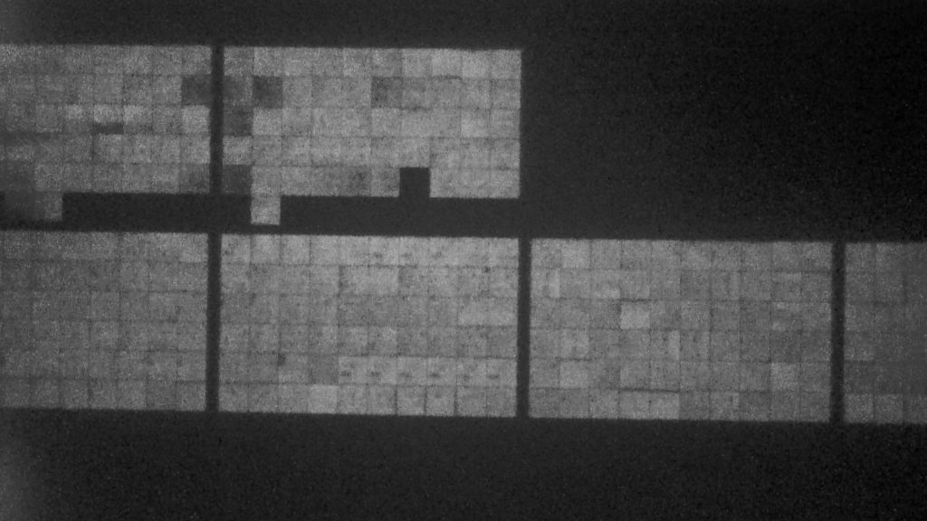 [画像・上:ドローンで上空から撮影したEL画像]
