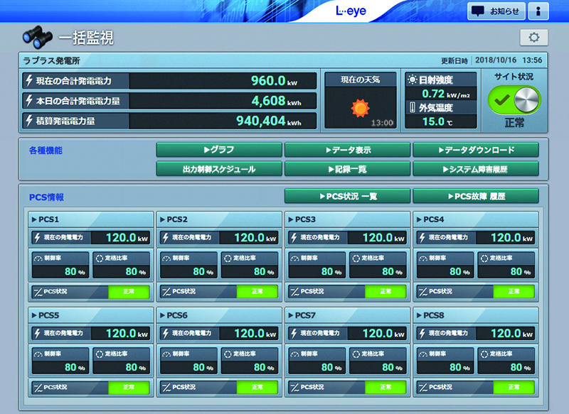 出力制御向けには、遠隔監視システム&サービスL・eyeの出力制御対応について紹介する。