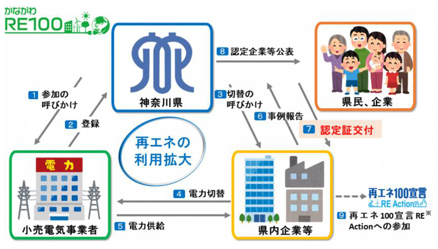 神奈川県は、国に先駆けて「2050年脱炭素社会」実現を表明し、CO2排出実質ゼロの達成に向けて各種取り組みを進めている。 [画像・上:「かながわ再エネ電力利用応援プロジェクト」全体像(資料:神奈川県)] 「かながわ再エネ電力利用応援プロジェクト」もその一環だ。県内で発電された再エネ電力の県内における利用拡大を目的に、小売電気事業者が提供する再エネ電力プランを公表している。 同再…