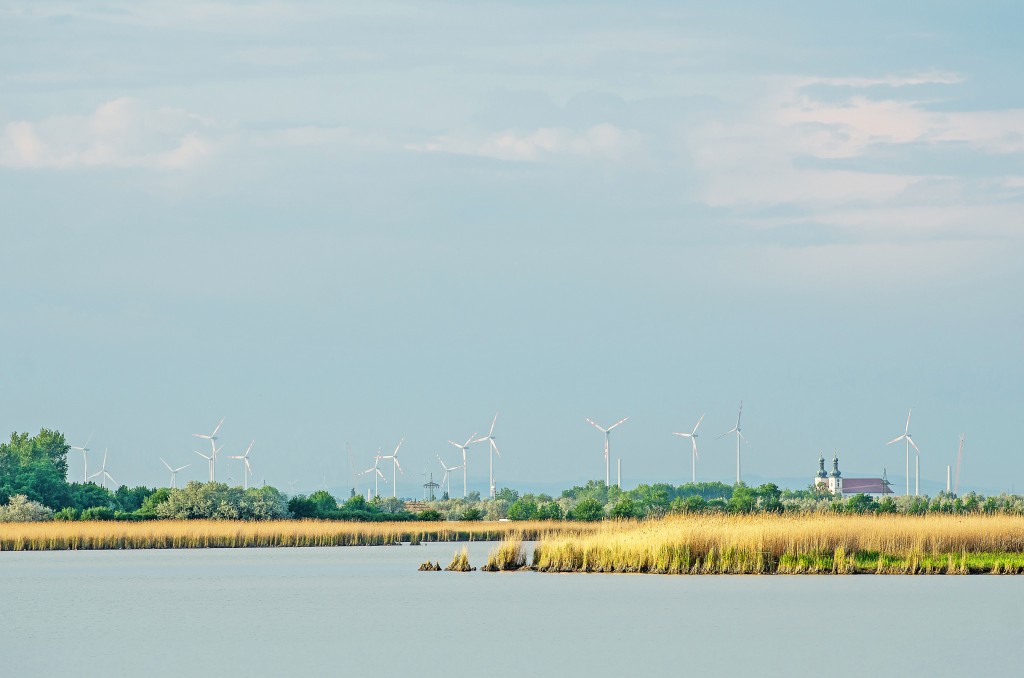 [画像・上:©Energie Burgenland ブルゲンラント州北部に建つ風車パーク。点々と建てるのではなく、適正ゾーンにはパークとして集約して建設されている。自然保護地帯の多いブルゲンラント州では、自然保護団体との構築的な協働作業により、風力適性ゾーンと禁止ゾーンを定めることで、鳥類保全と風力増産という二つの目的を両立させた。] オーストリア東端に位置するブルゲンラント州は、滋賀県ほど…