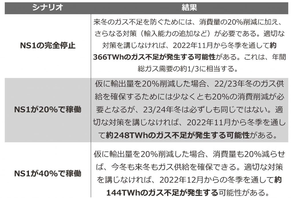 ロシアからの天然ガスパイプライン「ノルドストリーム1(NS1)」の輸送量が容量の20%にとどまる事態が続いており、ドイツ政府は危機感を募らせている。 そうした中で、ガスの供給停止を回避するためのシナリオを連邦ネットワーク規制庁が公表した。 [画像・上:今般のガス不足に際し、独ロ間の天然ガスパイプライン「ノルドストリーム1(NS1)」の稼働率別に考えられる今後のドイツ国内ガス需給への影…