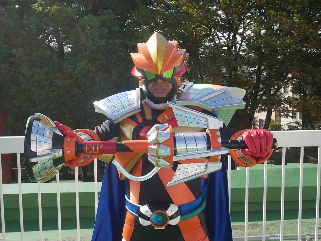 地球環境戦士「おひさマン」が気候変動から地球を救う決意表明
