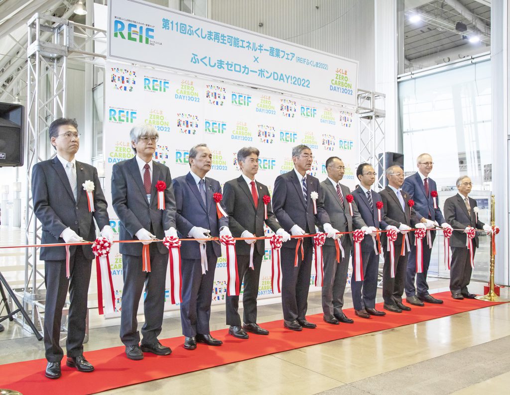 福島県と(公財)福島産業振興センター、地球にやさしい〝ふくしま〟県民会議が主催の「第11回ふくしま再生可能エネルギー産業フェア(REIFふくしま)×ふくしまゼロカーボンDAY!2022」が10月13日(木)~15日(土)の3日間、郡山市・ビッグパレットふくしまで開催された。 [画像・上:オープニングセレモニーでのテープカットの様子] 「ふくしまの『2050年カーボンニュートラル』と『…