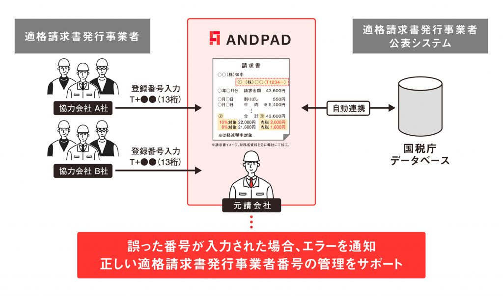 インボイス制度・適格請求書発行事業者番号登録機能の提供開始【アンドパッド】制度対応に関わる建設・施工事業者の業務負荷軽減を支援