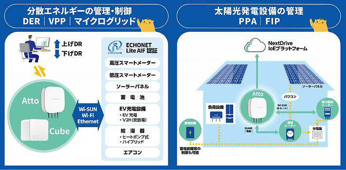 NextDriveは、「分散エネルギーの管理・制御」と「太陽光発電設備の管理」をテーマに、IoEプラットフォーム「Ecogenie+」を中心に、IoEゲートウェイの「Atto」、「Cube」や、エネルギーデータを活用したサービス事例について紹介する。