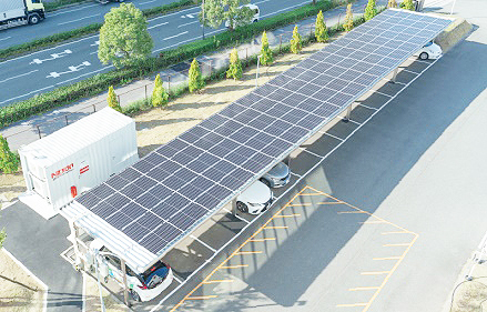 直流蓄電システム活用ソーラーカーポート快走中【ニプロン】交直変換ロス削減する高効率充放電で訴求