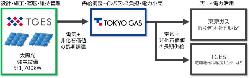 東京ガスと同グループ会社でプラントエンジニアリングを担う東京ガスエンジニアリングソリューションズ(TGES)はこのほど、オフサイト型コーポレートPPA(電力購入契約)スキームによる電力小売供給事業を開始すると発表した。 [画像・上:スキーム概要図(提供:東京ガス)] TGESが、東京ガスグループが管理する神奈川県内の二つの遊休地に、合計約1,700kWの非FIT太陽光発電設備を設置す…