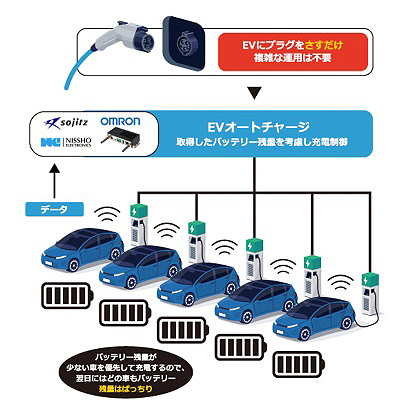 双日(東京都千代田区)、日商エレクトロニクス(東京都千代田区)、オムロン ソーシアルソリューションズ(東京都港区)はこのほど、積水ハウスの豊橋支店へ、商用EV・PHEV向けクラウド型充電制御システム「EVオートチャージ」を納入・設置した。 [画像・上:システムイメージ] 電気自動車の普及は、運輸業界、自治体、オフィス・工場を中心に急速な拡大が見込まれる。一方で、昼過ぎから夕方帯に訪れ…