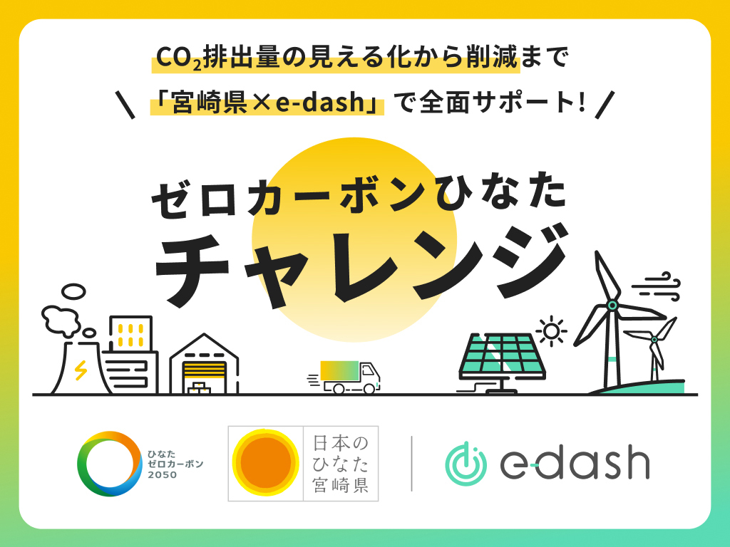 CO2排出量可視化クラウドサービス「e-dash」を提供するe-dash(東京都千代田区)はこのほど、宮崎県の委託を受け、県内50社の脱炭素化の取組をサポートすると発表した。 [画像・上:ゼロカーボンひなたチャレンジ(提供:e-dash)] プログラム名は「ゼロカーボンひなたチャレンジ」。宮崎県内に事業所を有する企業が参加対象で、先着50社が2024年3月末まで同社の支援を無料で受け…