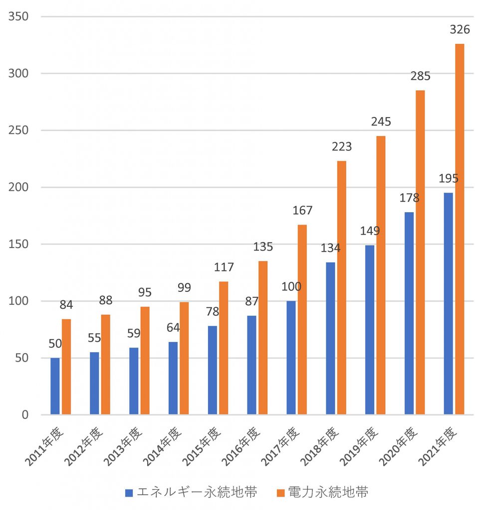 連載「100%自然エネルギー地域をゆく122」日本の100%自然エネルギー地域 ~エネルギー永続地帯の最新データ(2021年度推計)