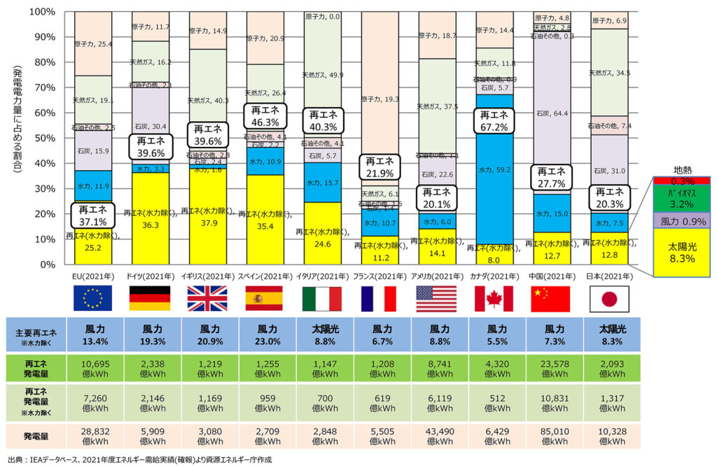 連邦政府は11月9日に産業を支援するための電力価格パッケージを決定した。産業界の電力料金負担を緩和することで、ドイツの産業を支援することが狙いだ。 [画像・上:主要各国の再エネ(kWh)導入割合(資料:経産省)] 産業支援の目玉は電力税? 今回の支援は特に製造業を対象に行われ、政府は「電力価格パッケージ」と呼んでおり、総額は来年だけでも120億ユーロに上る見込みだ。 支援…