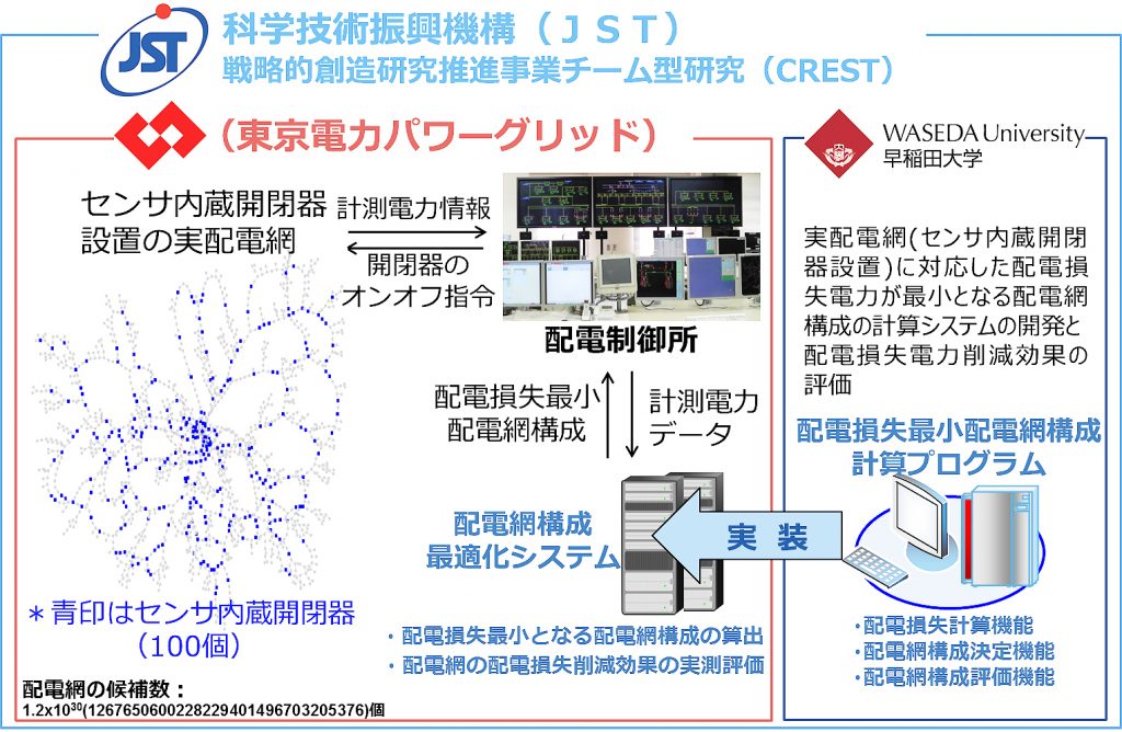 「配電網の電力損失最小化の共同実証試験」開始【JST/早稲田大学/東京電力パワーグリッド】開閉器で配電網の潮流最適化