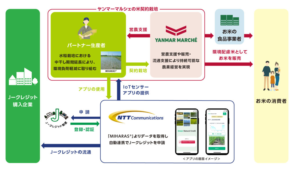 水稲耕作の中干し期間延長の農法でJ-クレジット認証取得 事業展開本格化へ=ヤンマーマルシェ/NTTコミュニケーションズ