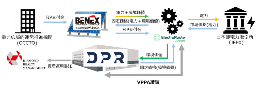 バーチャルPPA締結、倉庫屋根上太陽光の環境価値を提供へ【ダイヤモンド・リアルティ・マネジメントほか】発電家-需要家間に第三者挟み長期間固定価格での取引を実現