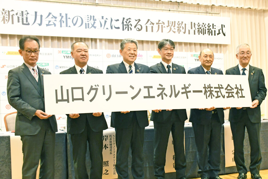 山口市とNTTアノードエナジー(東京都港区)を含む計6者は、共同出資のもと4月1日に地域新電力会社「山口グリーンエネルギー株式会社」を設立すると発表した。2022年に選定された第2回脱炭素先行地域の取り組みの一環で、地産の再生可能エネルギー電力の市内への供給など、地域脱炭素の中核的な役割を担う。 [画像・上:締結式に臨んだ山口市長・伊藤和貴氏(中央右)、NTTアノードエナジー代表取締役社長…