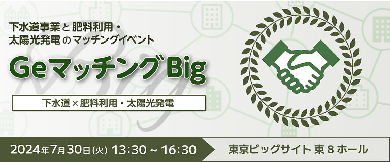 日本下水道協会は、下水道界での重点課題である太陽光発電と下水汚泥の肥料利用をテーマとしたビジネスマッチングイベント「GeマッチングNIG In 下水道展‘24東京」のブース出展企業を募集している。