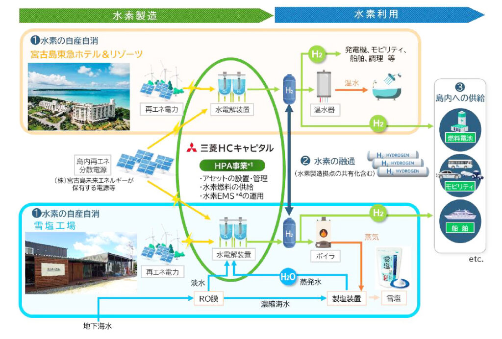 宮古島でのグリーン水素エネルギー地産地消モデル構築目指し検討開始【三菱HCキャピタル/電中研/ネクステムズ】水素・製塩の両事業間で水資源の循環も検討