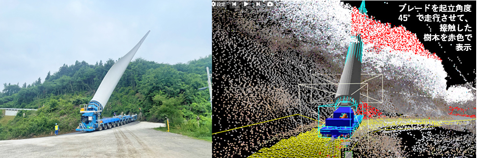 戸田建設と、AIスタートアップの燈(あかり、東京都文京区)は、AIによる点群モデリング技術と支障物を考慮した経路生成アルゴリズムを活用し、陸上風力発電における風車ブレードやタワーなどの部材輸送経路を3次元モデル上で検討するシミュレーションシステムを共同開発した。 [画像・上:山間部輸送のシミュレーション結果と実際の様子(提供:戸田建設/燈)] 陸上風力発電の適地はしばしば山あい深くに…