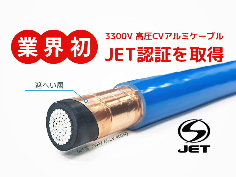 [画像・上:【業界初】JET認証を取得したGBPの3300V高圧CVアルミケーブル]