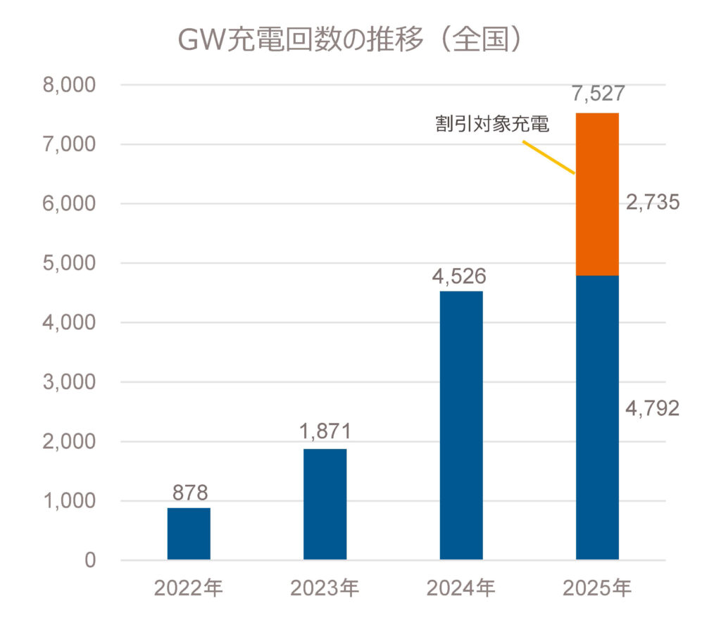 EV充電サービス「エコQ電」を運営するエネゲート(大阪市)は、電力系統で太陽光発電の出力制御が発生しそうなタイミングに、EVユーザーへ充電を促す「お得なEV充電キャンペーン」の実証結果を公表した。 [画像・上:充電実績(提供:エネゲート)] キャンペーンは4月26日から5月6日までのGW期間に、全国のエコQ電カード・アプリで充電可能な約3,000台の急速充電器を対象に実施された。全国…