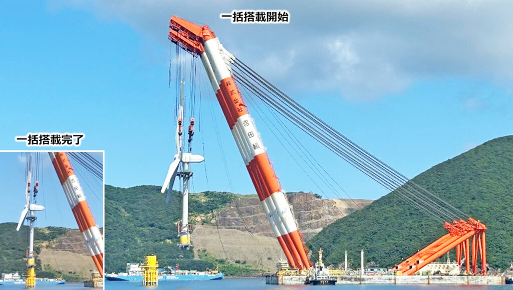 浮体式洋上風車一式を吊曳航する実験に1/3モデルで初成功【戸田建設】自社開発技術「ハイブリッド浮体構造」仕様風車の施工コスト削減に貢献