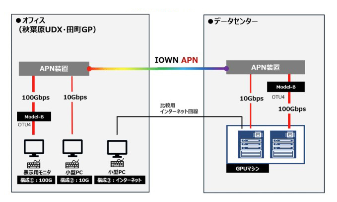 NTTドコモビジネス、NTTドコモソリューションズ、NTTアーバンソリューションズ、NTTファシリティーズの4社は、NTTグループが提唱・開発する光通信技術「IOWN APN」(オール光通信)を活用した、ICT機器活用形態合理化による新たなオフィスモデルの検証を実施。良好な結果を得た。 [画像・上:ユーザーオフィスとDCをIOWN APNでつなぐ本システムの構成イメージ(提供:NTTドコモ…