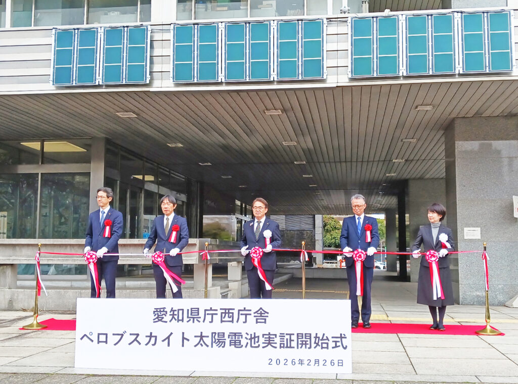 愛知県庁舎でペロブスカイト太陽電池の発電実証開始【アイシン】官民で県内の次世代太陽電池普及の取り組み展開へ